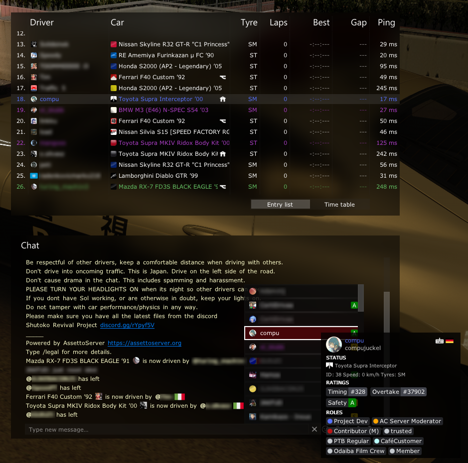 Drivers can choose to hide their Discord and/or Steam profile information. These settings will apply to all servers connected to the same AssettoServer Hub instance.